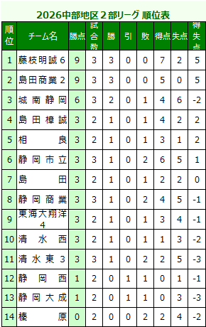静岡県中部地区サッカーユースリーグ2部