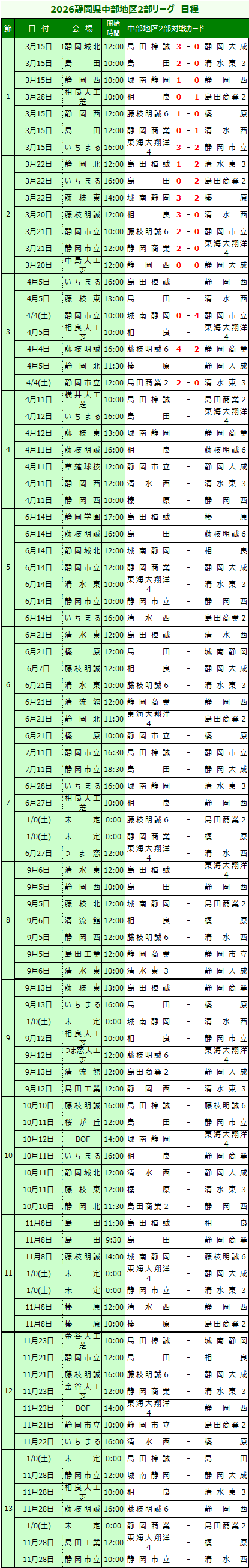 (開催日、時間はチーム都合により変更の場合もありますので観戦の際はチーム等に確認ねがいます。) (下段より、試合結果情報をお寄せください。リーグ表に反映いたします。)